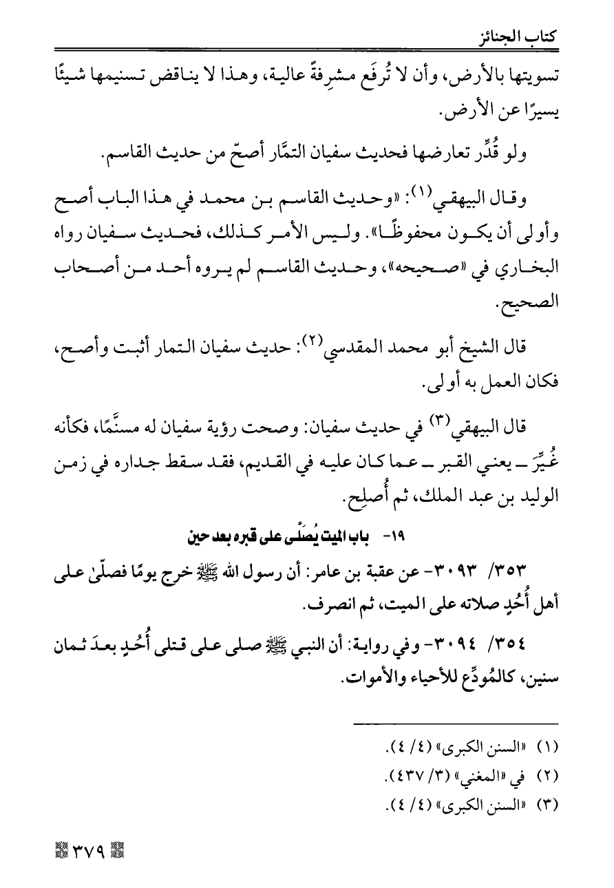 ٣٥٤/ ٣٠٩٤ - وفي رواية: أن النبي - صلى الله عليه وسلم - صلى على قتلى أُحُدٍ بعدَ ثمان سنين، كالمُودِّع للأحياء والأموات.