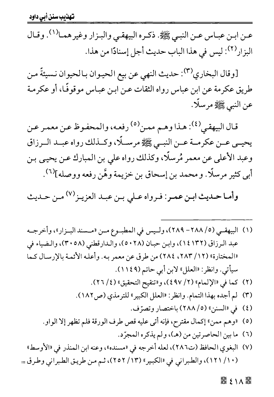 [وقال البخاري (¬٣): حديث النهي عن بيع الحيوان بالحيوان نسيئةً من طريق عكرمة عن ابن عباس رواه الثقات عن ابن عباس موقوفًا، أو عكرمة عن النبي - صلى الله عليه وسلم - مرسلًا.