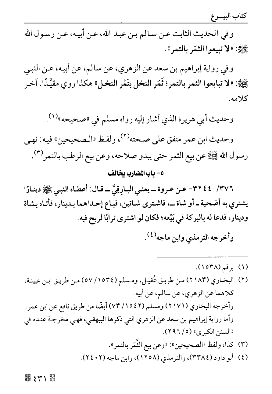 (¬٣) كذا، ولفظ «الصحيحين»: «وعن بيع الثَّمَر بالتمر».
