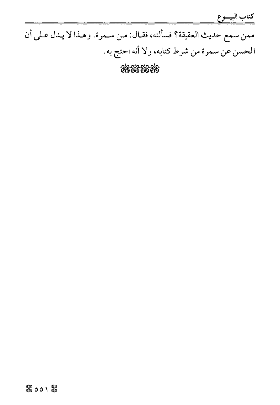 ممن سمع حديث العقيقة؟ فسألته، فقال: من سمرة. وهذا لا يدل على أن الحسن عن سمرة من شرط كتابه، ولا أنه احتج به.