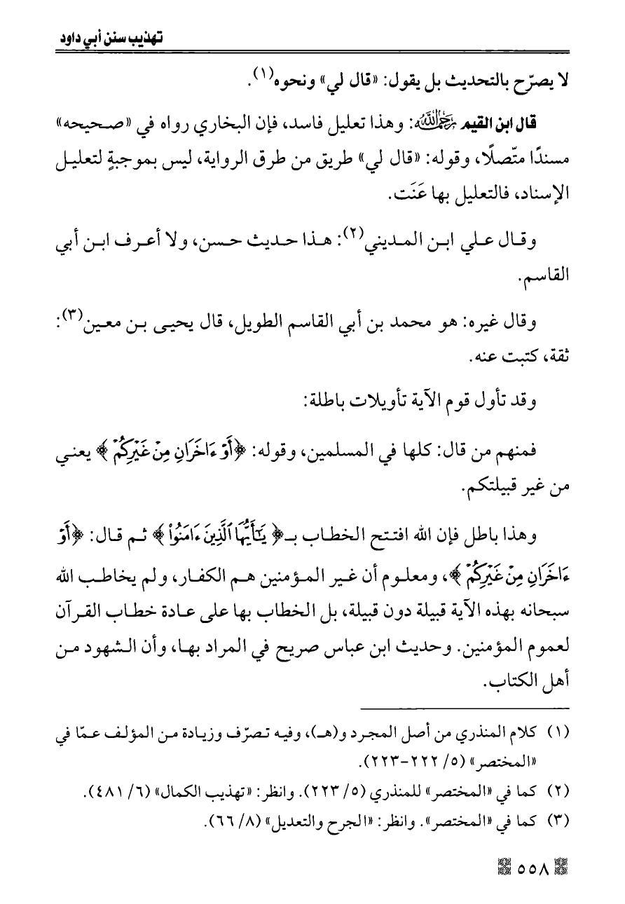 (¬٢) كما في «المختصر» للمنذري (٥/ ٢٢٣). وانظر: «تهذيب الكمال» (٦/ ٤٨١).