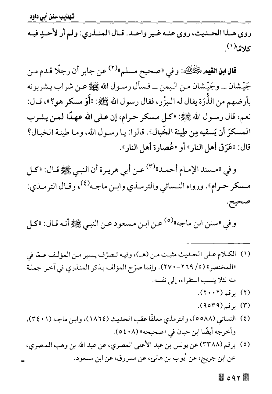 (¬١) الكلام على الحديث مثبت من (هـ)، وفيه تصرّف يسير من المؤلف عمّا في «المختصر» (٥/ ٢٦٩ - ٢٧٠). وإنما صرّح المؤلف بذكر المنذري في آخر جملة منه لئلا ينسب استقراءه إلى نفسه.