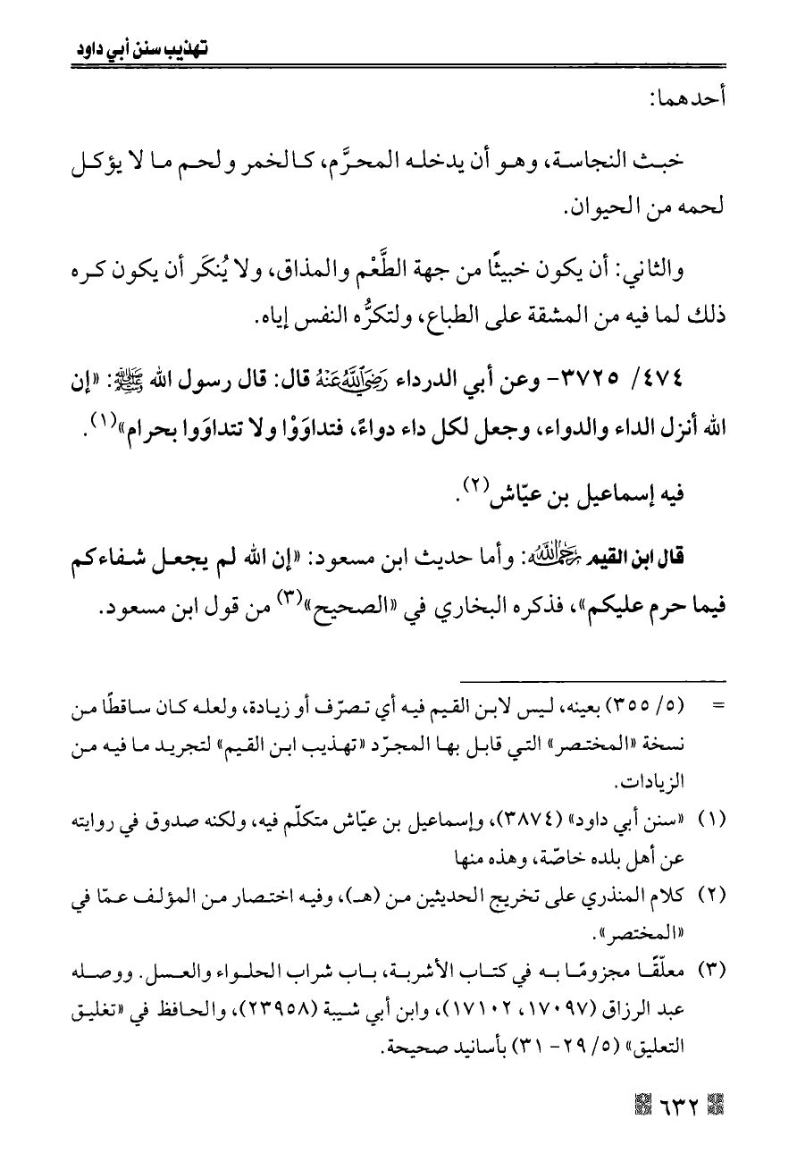 (¬١) «سنن أبي داود» (٣٨٧٤)، وإسماعيل بن عيّاش متكلّم فيه، ولكنه صدوق في روايته عن أهل بلده خاصّة، وهذه منها