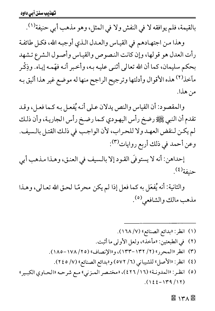 والمقصود: أن القياس والنص يدلان على أنه يُفعل به كما فعل، وقد تقدم أن النبي - صلى الله عليه وسلم - رضخ رأس اليهودي كما رضخ رأس الجارية، وأن ذلك لم يكن لنقض العهد ولا للحراب، لأن الواجب في ذلك القتل بالسيف. وعن أحمد في ذلك أربع روايات (¬٣):