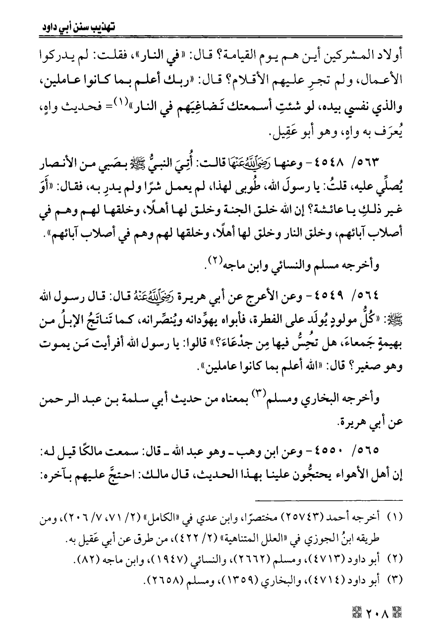 ٥٦٥/ ٤٥٥٠ - وعن ابن وهب ــ وهو عبد الله ــ قال: سمعت مالكًا قيل له: إن أهل الأهواء يحتجُّون علينا بهذا الحديث، قال مالك: احتجَّ عليهم بآخره: