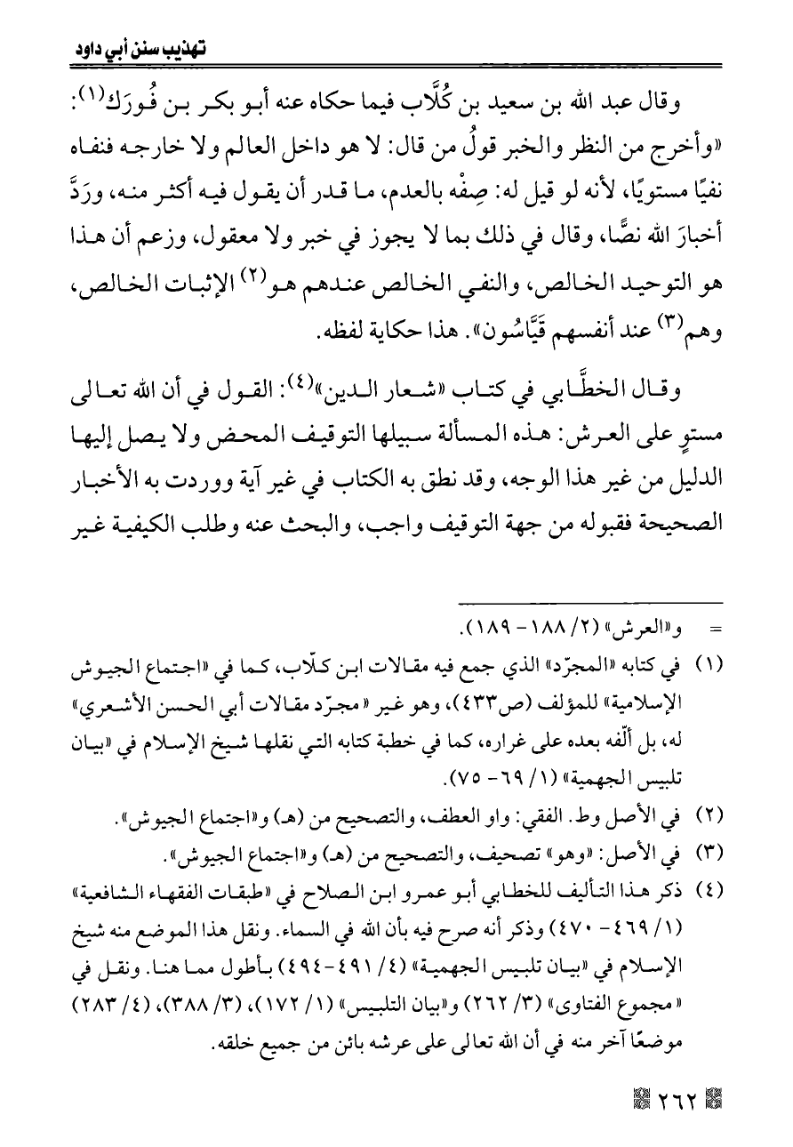 (¬٤) ذكر هذا التأليف للخطابي أبو عمرو ابن الصلاح في «طبقات الفقهاء الشافعية» (١/ ٤٦٩ - ٤٧٠) وذكر أنه صرح فيه بأن الله في السماء. ونقل هذا الموضع منه شيخ الإسلام في «بيان تلبيس الجهمية» (٤/ ٤٩١ - ٤٩٤) بأطول مما هنا. ونقل في «مجموع الفتاوى» (٣/ ٢٦٢) و «بيان التلبيس» (١/ ١٧٢)، (٣/ ٣٨٨)، (٤/ ٢٨٣) موضعًا آخر منه في أن الله تعالى على عرشه بائن من جميع خلقه.