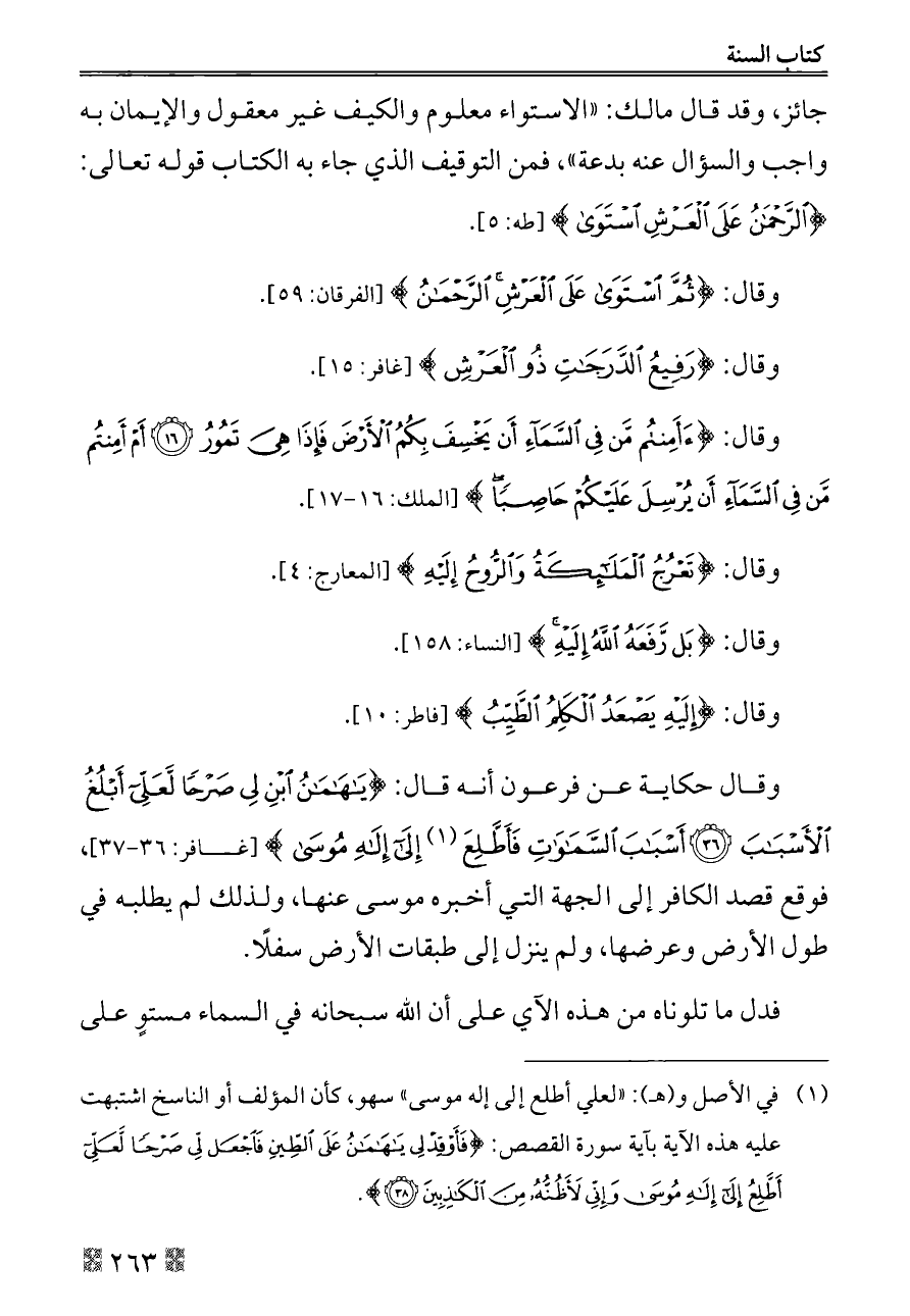 (¬١) في الأصل و (هـ): «لعلي أطلع إلى إله موسى» سهو، كأن المؤلف أو الناسخ اشتبهت عليه هذه الآية بآية سورة القصص: {فَأَوْقِدْ لِي يَاهَامَانُ عَلَى الطِّينِ فَاجْعَلْ لِي صَرْحًا لَعَلِّي أَطَّلِعُ إِلَى إِلَهِ مُوسَى وَإِنِّي لَأَظُنُّهُ مِنَ الْكَاذِبِينَ (٣٨)}.