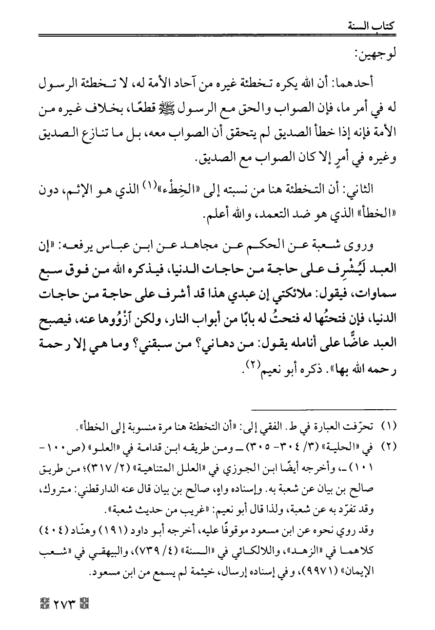 (¬١) تحرّفت العبارة في ط. الفقي إلى: «أن التخطئة هنا مرة منسوبة إلى الخطأ».