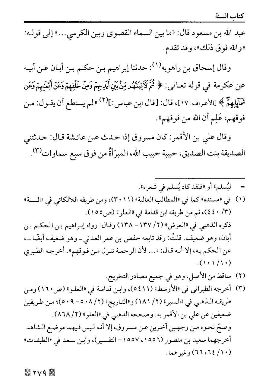 (¬١) في «مسنده» كما في «المطالب العالية» (٣٠١١)، ومن طريقه اللالكائي في «السنة» (٣/ ٤٤٠)، ثم من طريقه ابن قدامة في «العلو» (ص ١٥٥).