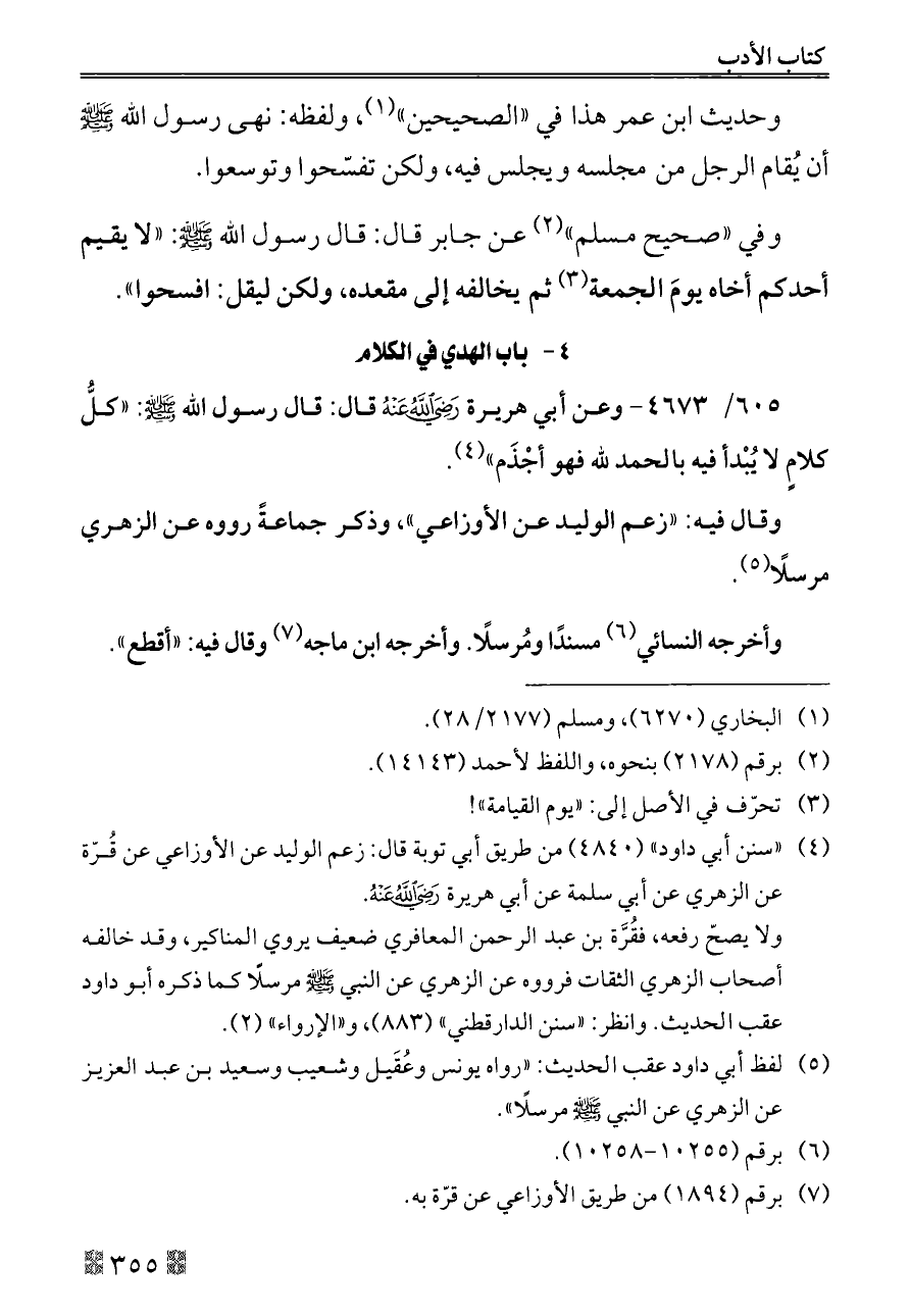 (¬٤) «سنن أبي داود» (٤٨٤٠) من طريق أبي توبة قال: زعم الوليد عن الأوزاعي عن قُرّة عن الزهري عن أبي سلمة عن أبي هريرة - رضي الله عنه -.