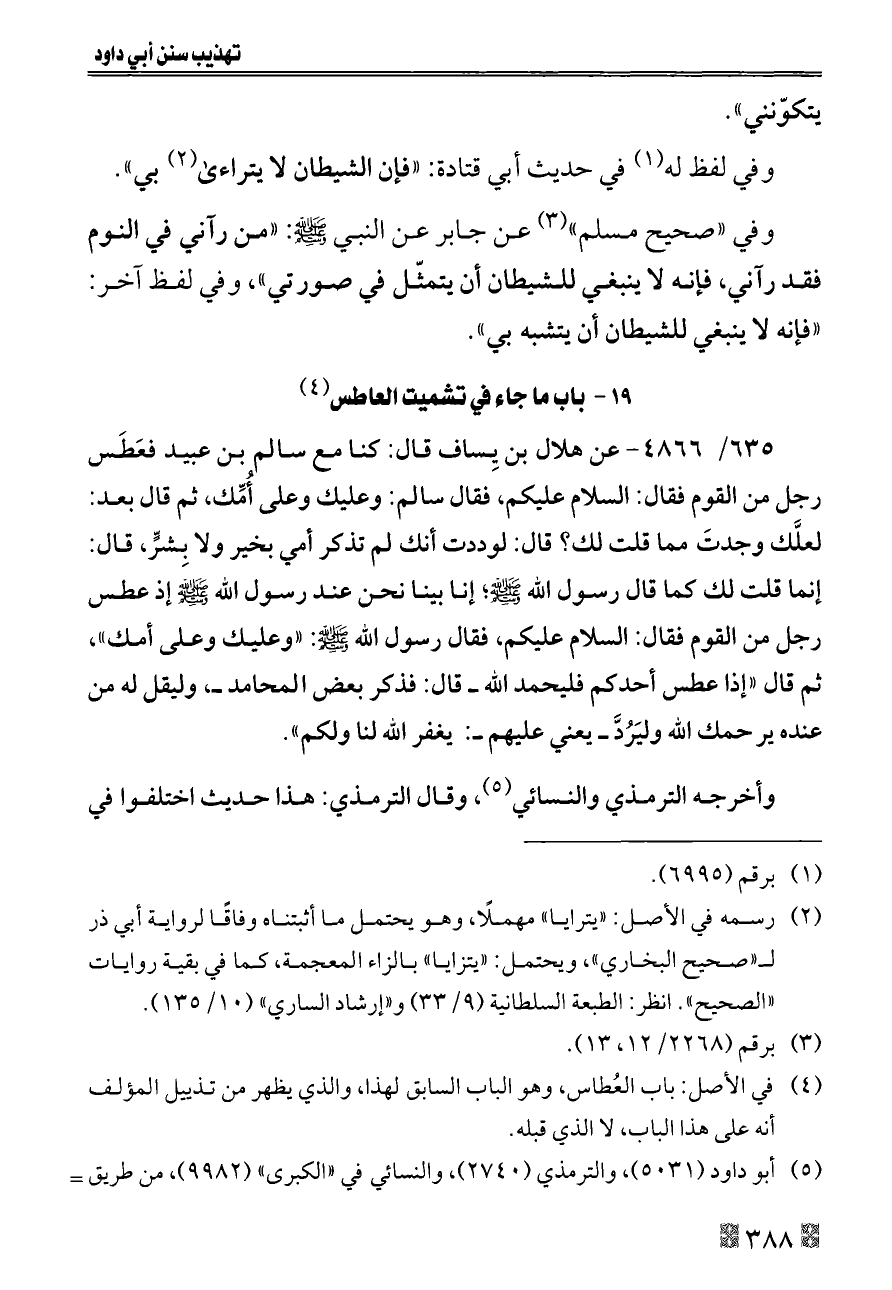 (¬٤) في الأصل: باب العُطاس، وهو الباب السابق لهذا، والذي يظهر من تذييل المؤلف أنه على هذا الباب، لا الذي قبله.