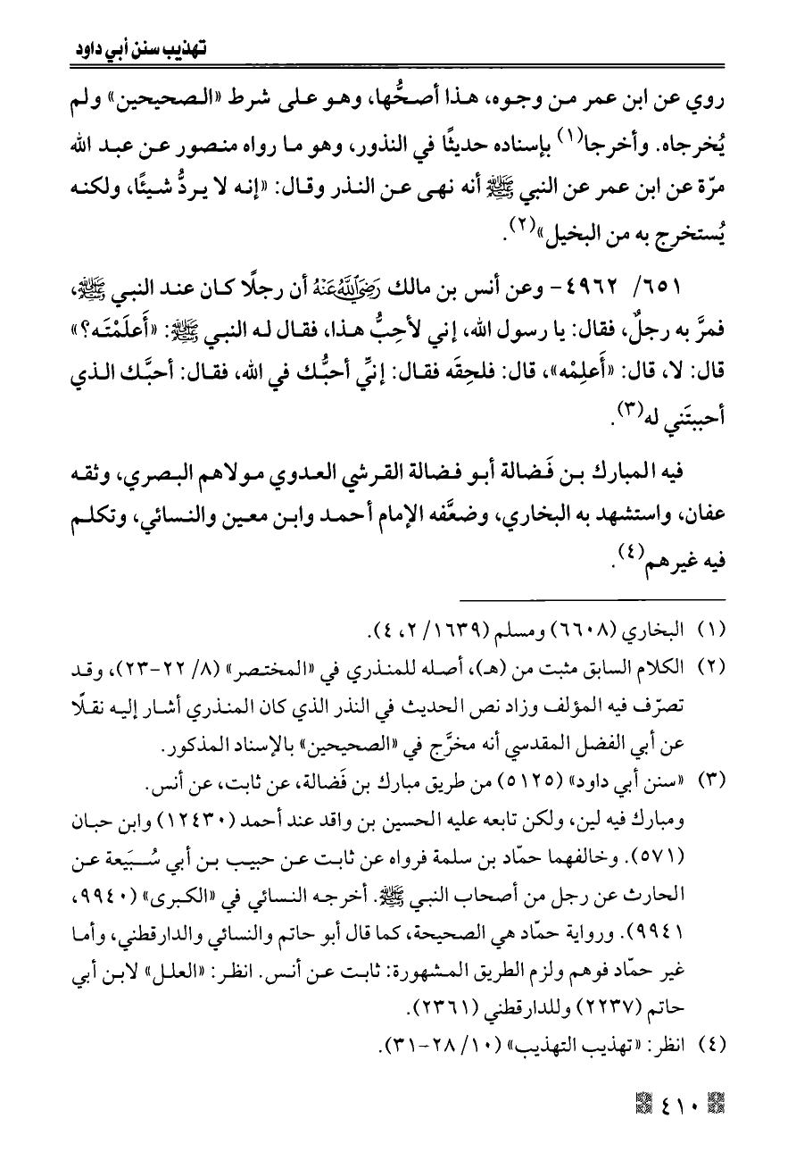 (¬٣) «سنن أبي داود» (٥١٢٥) من طريق مبارك بن فَضالة، عن ثابت، عن أنس.