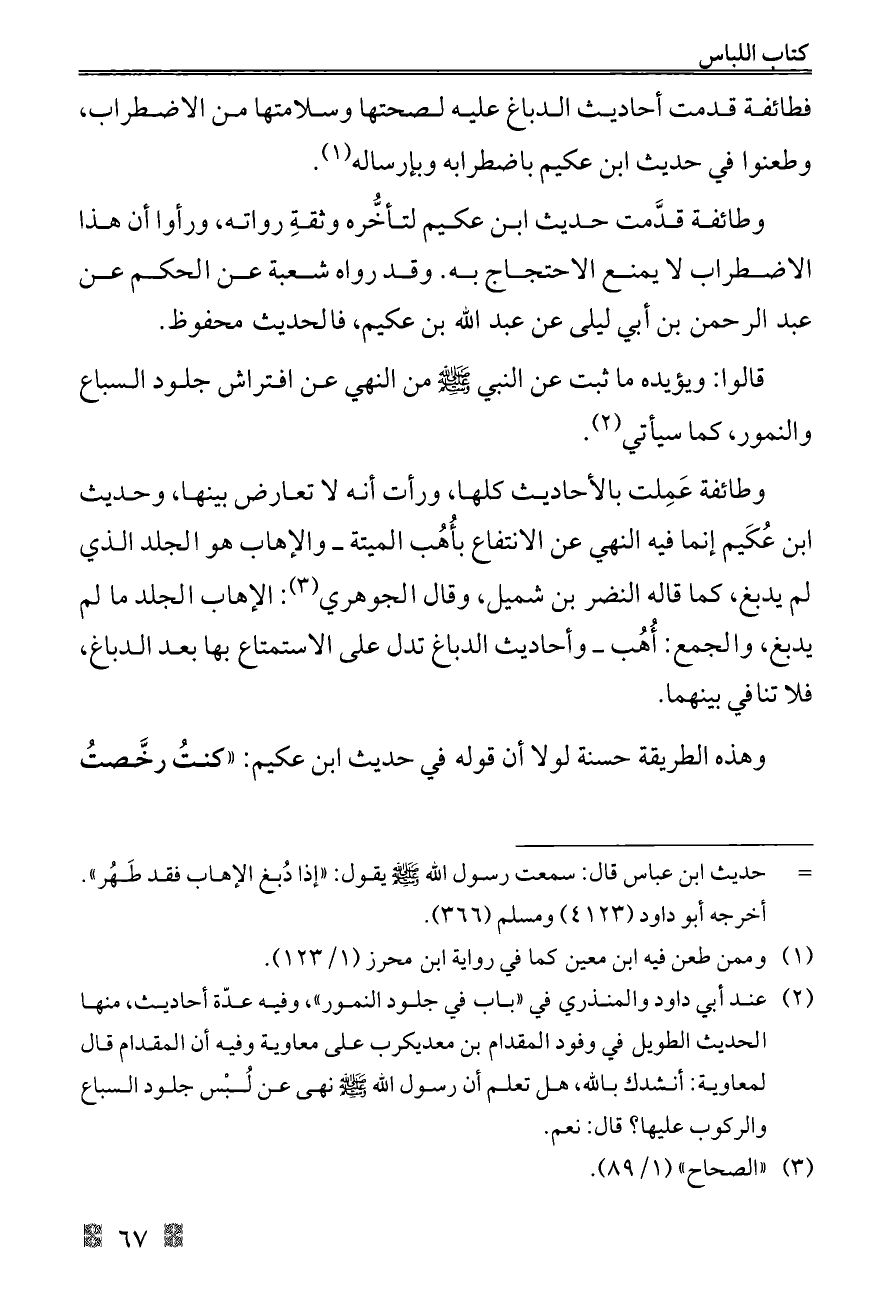 وهذه الطريقة حسنة لولا أن قوله في حديث ابن عكيم: «كنتُ رخَّصتُ