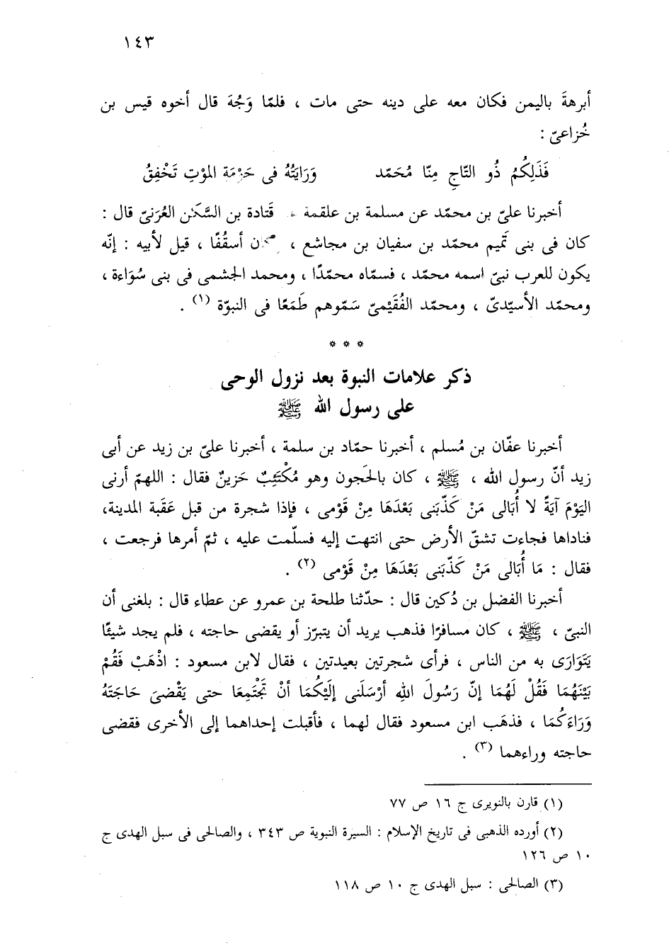 (¬٣) الصالحى: سبل الهدى ج ١٠ ص ١١٨.