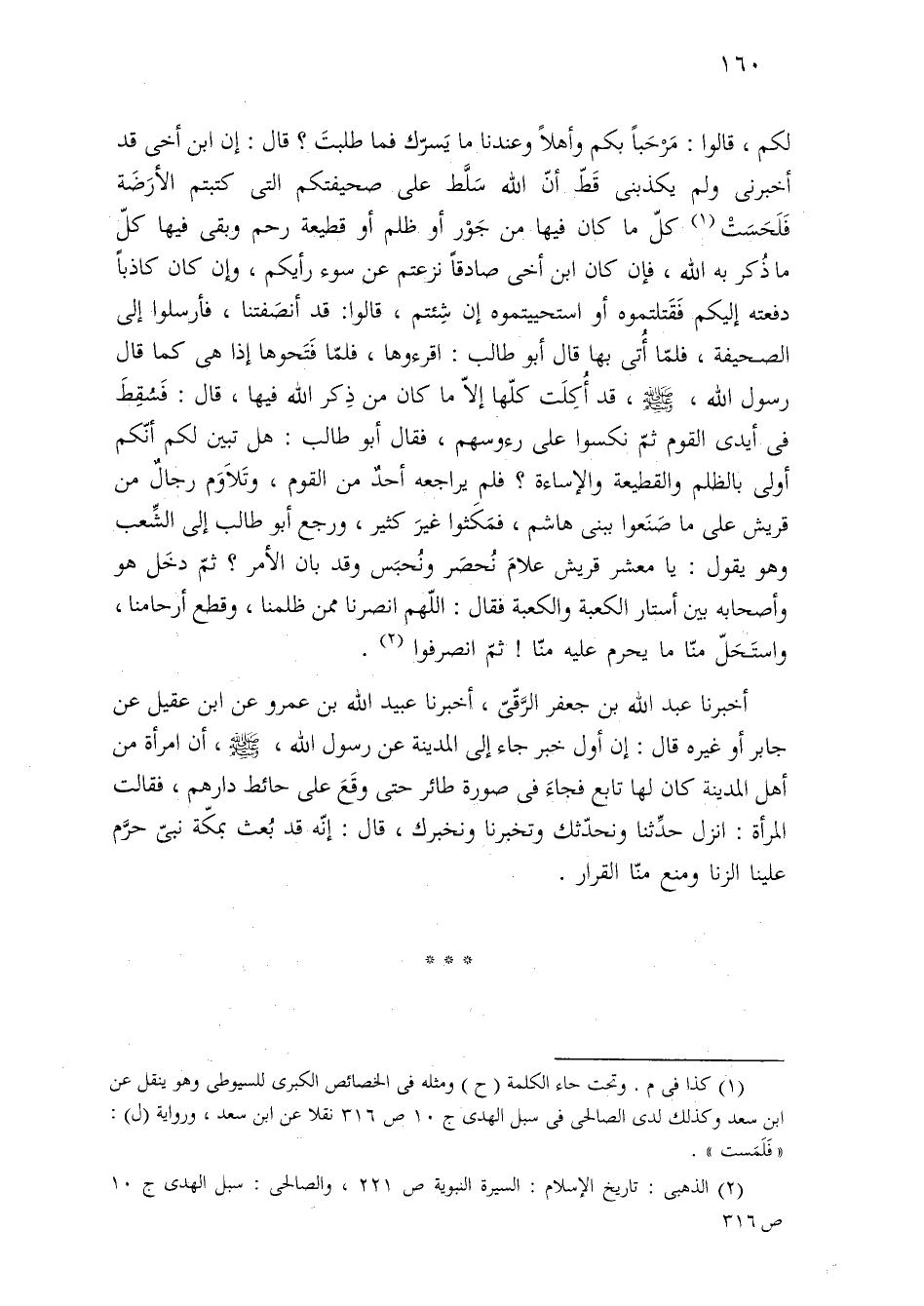 (¬٢) الذهبى: تاريخ الإسلام: السيرة النبوية ص ٢٢١، والصالحى: سبل الهدى ج ١٠ ص ٣١٦.