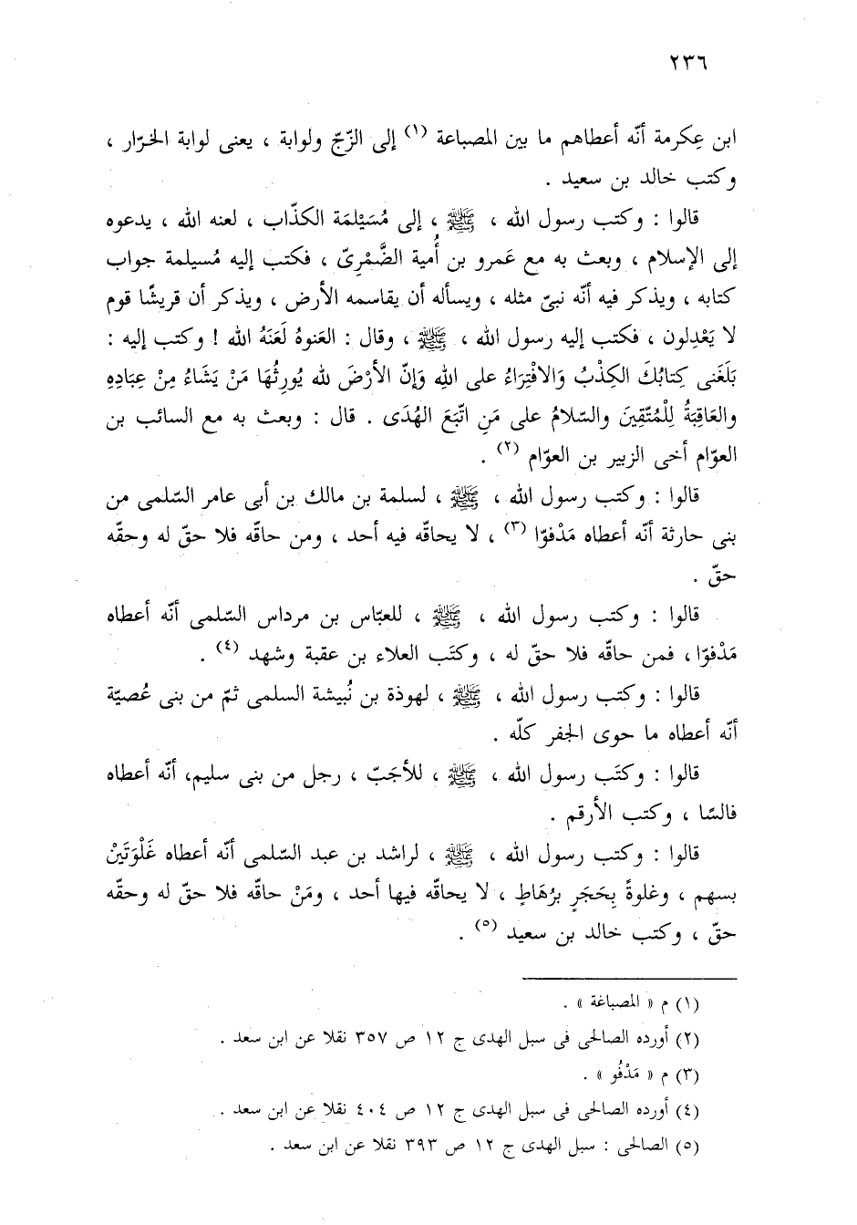(¬٥) الصالحى: سبل الهدى ج ١٢ ص ٣٩٣ نقلا عن ابن سعد.