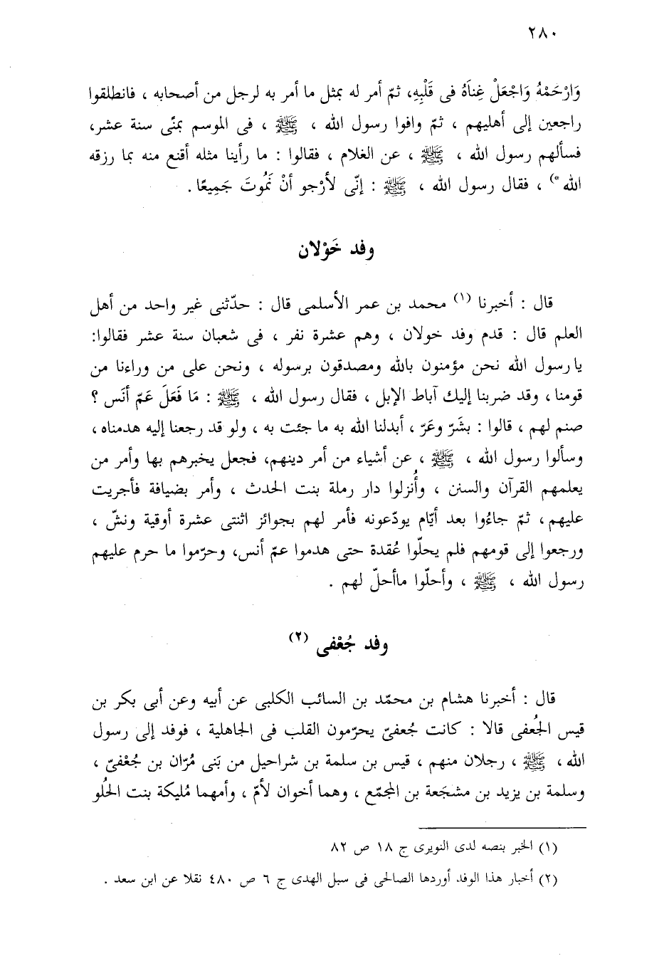 (¬٢) أخبار هذا الوفد أوردها الصالحى فى سبل الهدى ج ٦ ص ٤٨٠ نقلا عن ابن سعد.