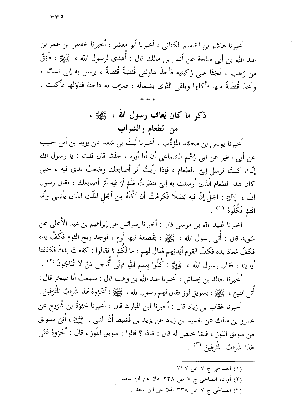 (¬٣) الصالحى ج ٧ ص ٣٣٨ نقلا عن ابن سعد.