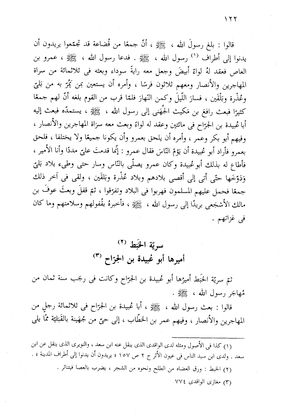 ثمّ سريّة الخَبَط أميرُها أبو عُبيدة بن الجرّاح وكانت في رجَب سنة ثمان من مُهاجَر رسول الله، - صلى الله عليه وسلم -.