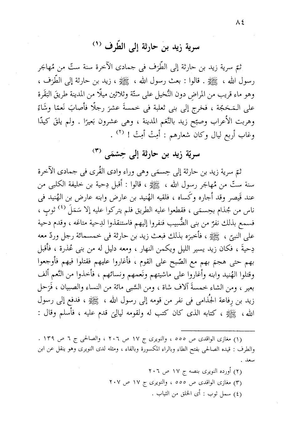 (¬٣) مغازى الواقدى ص ٥٥٥، والنويرى ج ١٧ ص ٢٠٧.