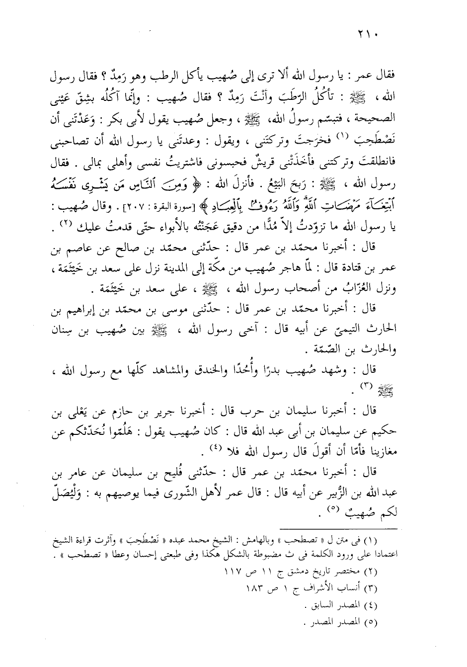 قال: وشهد صُهيب بدرًا وأُحُدًا والخندق والمشاهد كلّها مع رسول الله، - صلى الله عليه وسلم - (¬٣).