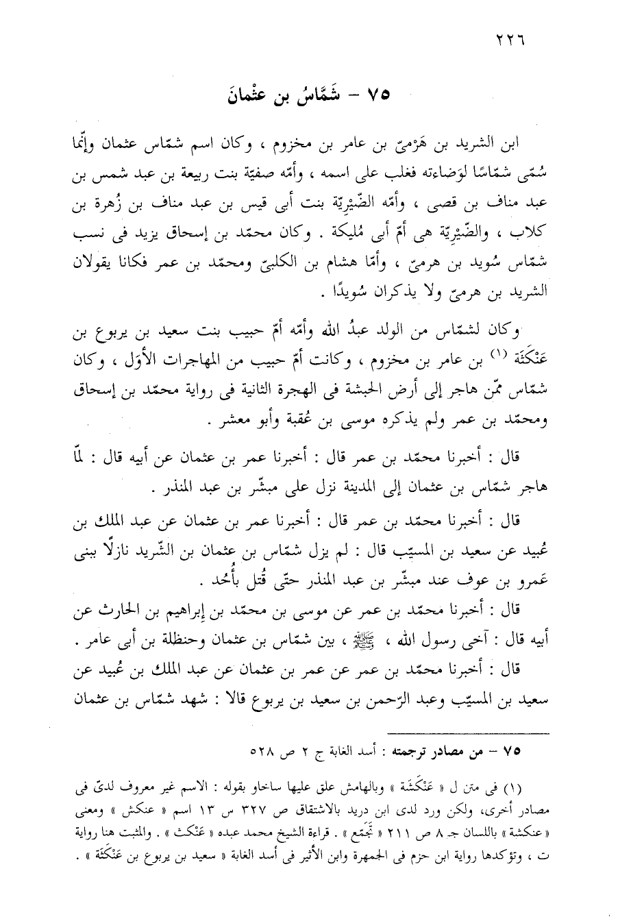 ٧٥ - شَمَّاسُ بن عثْمانَ