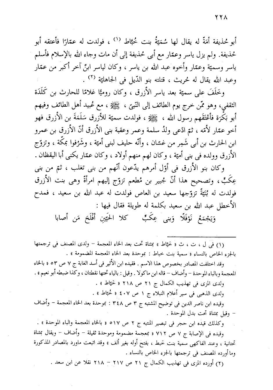 (¬١) في ل، ت، ث "خَيَّاط" بمثناة تحت بعد الخاء المعجمة - ولدى المصنف في ترجمتها بالجزء الخاص بالنساء "سمية بنت خباط: بموحدة بعد الخاء المعجمة المضمومة".