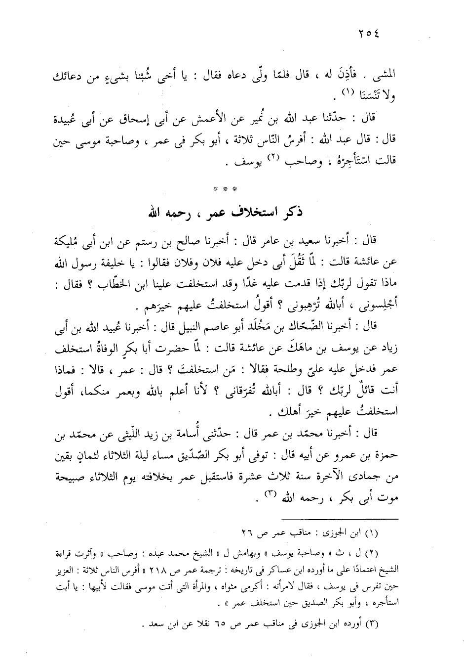 (¬٣) أورده ابن الجوزى في مناقب عمر ص ٦٥ نقلا عن ابن سعد.