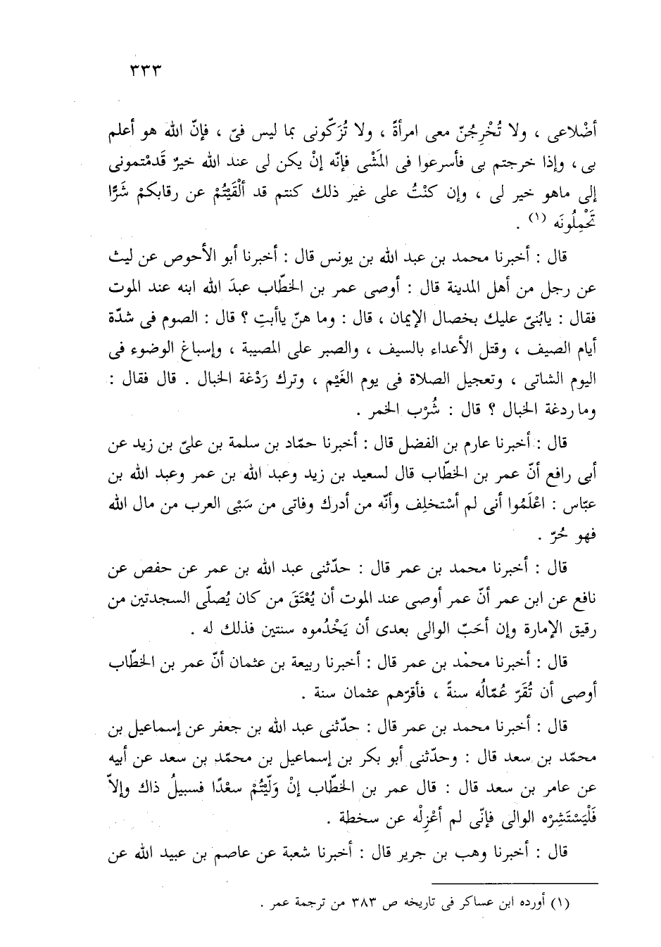 (¬١) أورده ابن عساكر في تاريخه ص ٣٨٣ من ترجمة عمر.