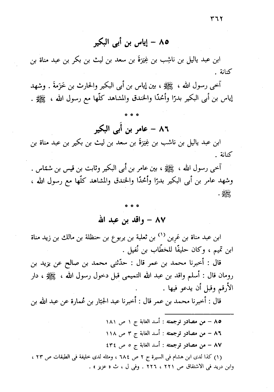 ٨٥ - من مصادر ترجمته: أسد الغابة ج ١ ص ١٨١.