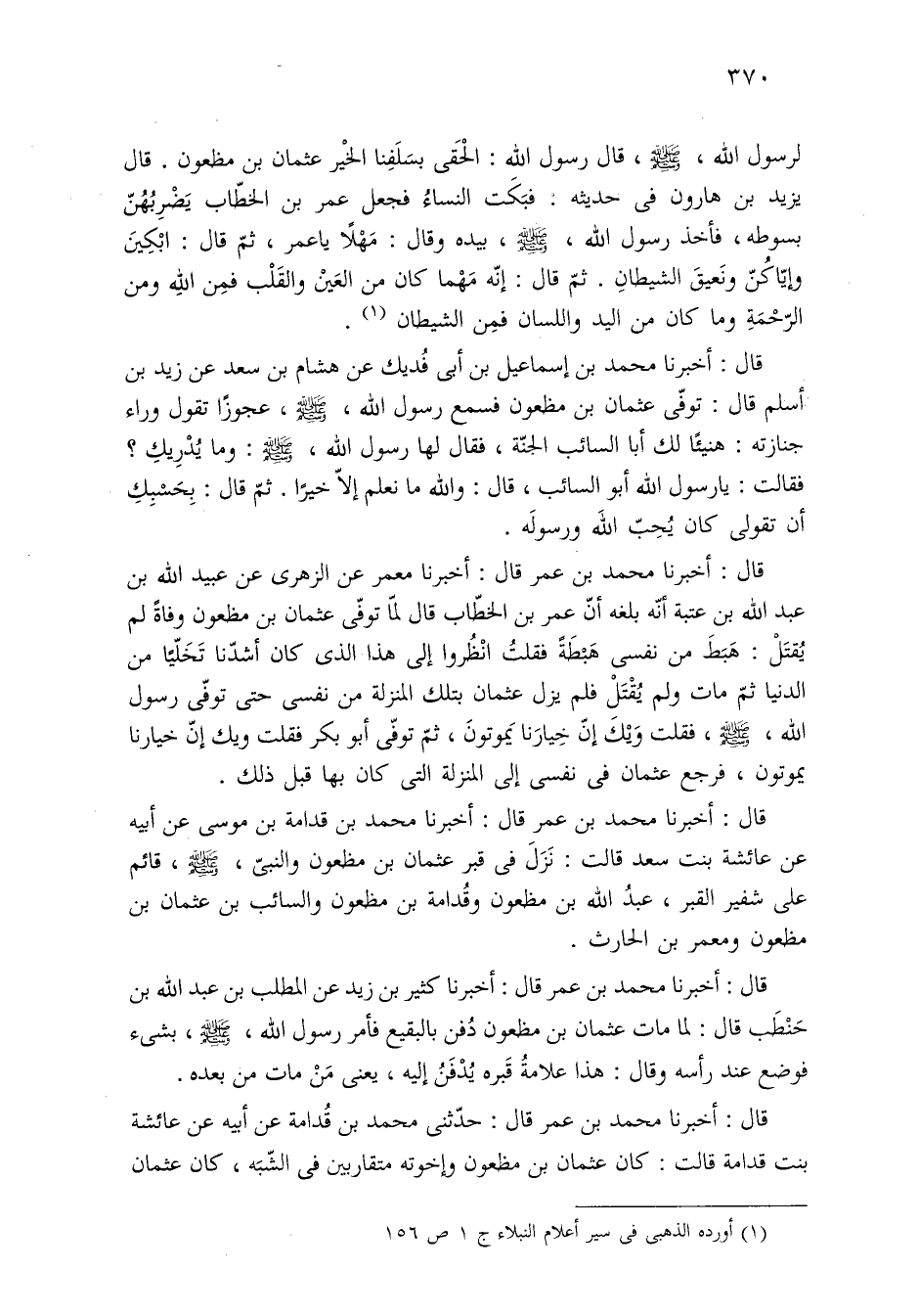 (¬١) أورده الذهبى في سير أعلام النبلاء ج ١ ص ١٥٦.