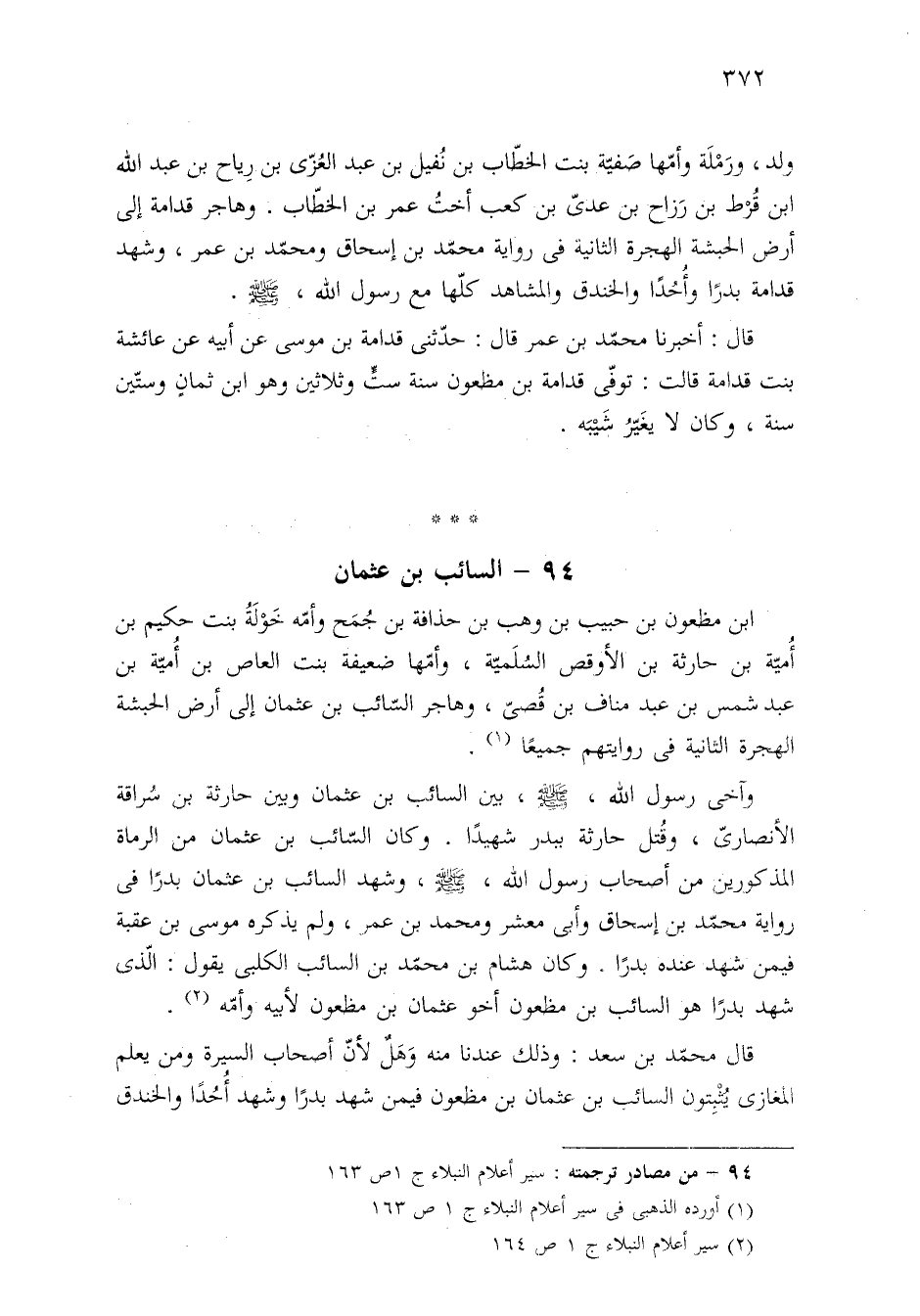٩٤ - من مصادر ترجمته: سير أعلام النبلاء ج ١ ص ١٦٣.