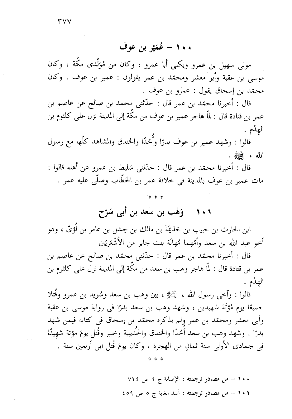 ١٠٠ - من مصادر ترجمته: الإصابة ج ٤ ص ٧٢٤.