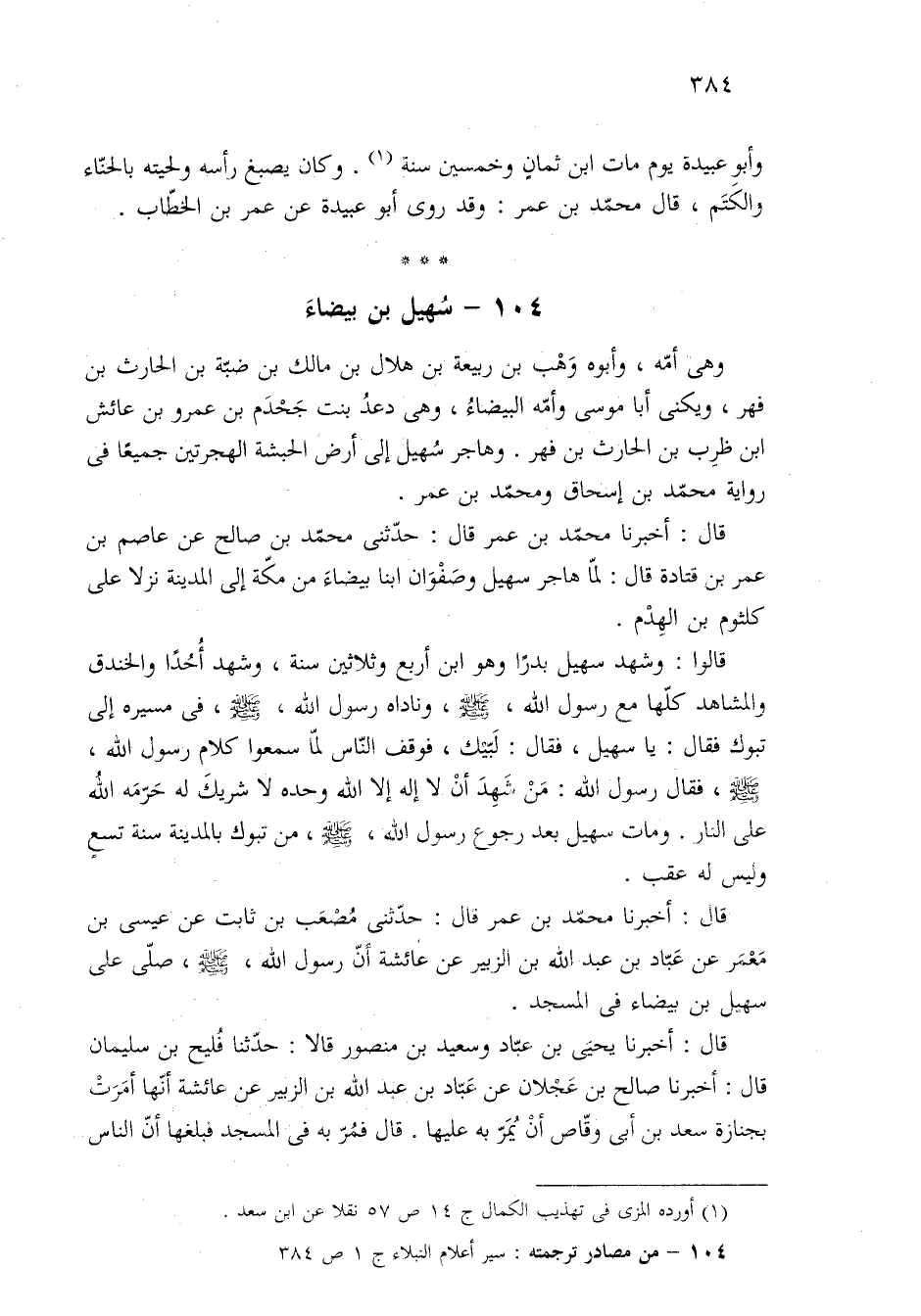 ١٠٤ - من مصادر ترجمته: سير أعلام النبلاء ج ١ ص ٣٨٤.