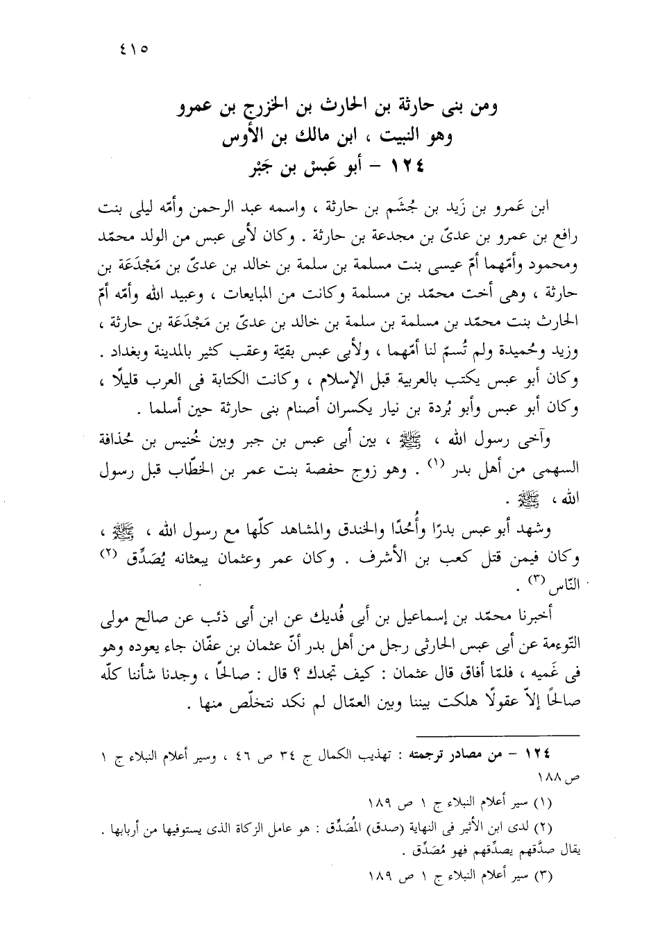 ١٢٤ - من مصادر ترجمته: تهذيب الكمال ج ٣٤ ص ٤٦، وسير أعلام النبلاء ج ١ ص ١٨٨.