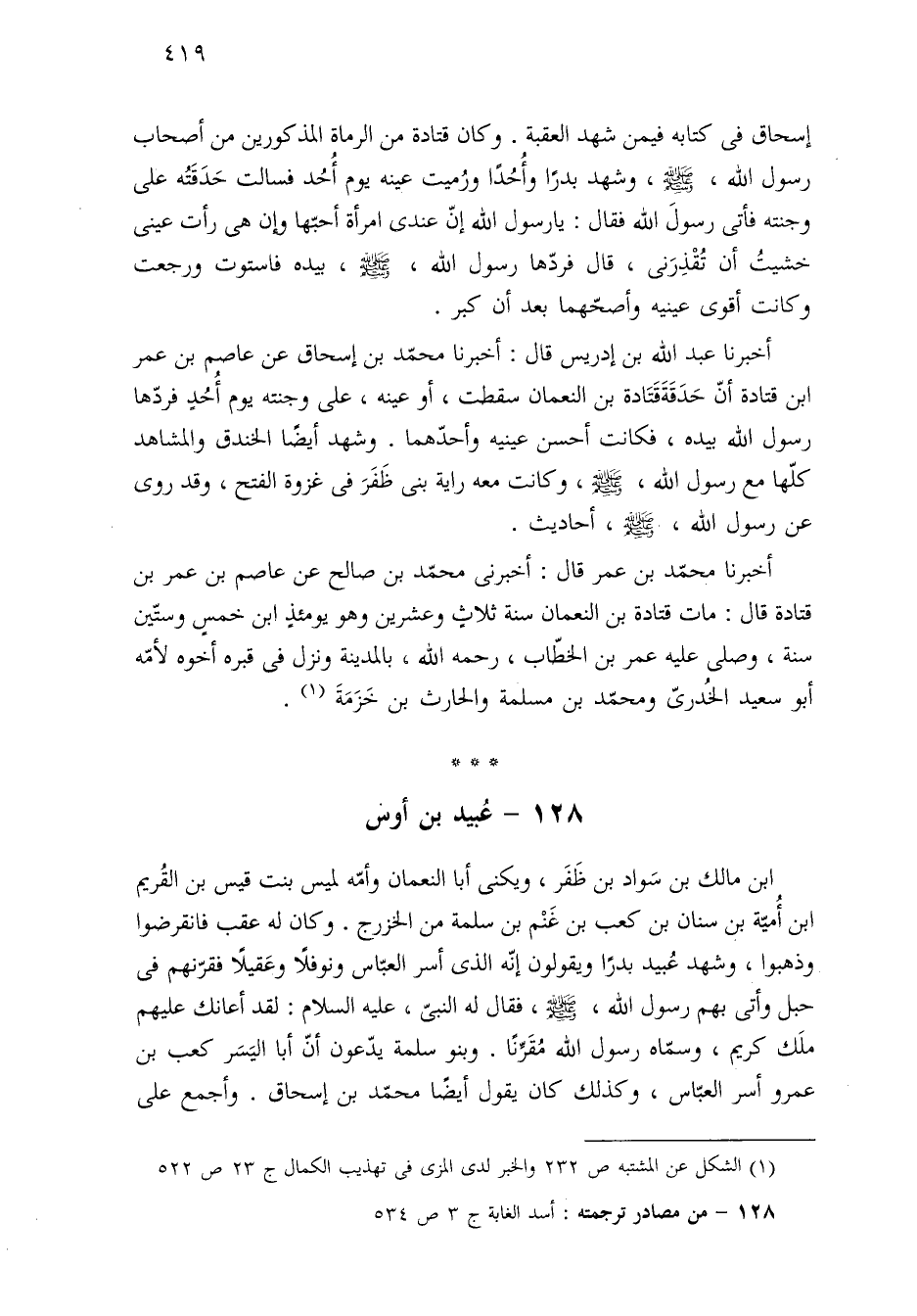 ١٢٨ - من مصادر ترجمته: أسد الغابة ج ٣ ص ٥٣٤.