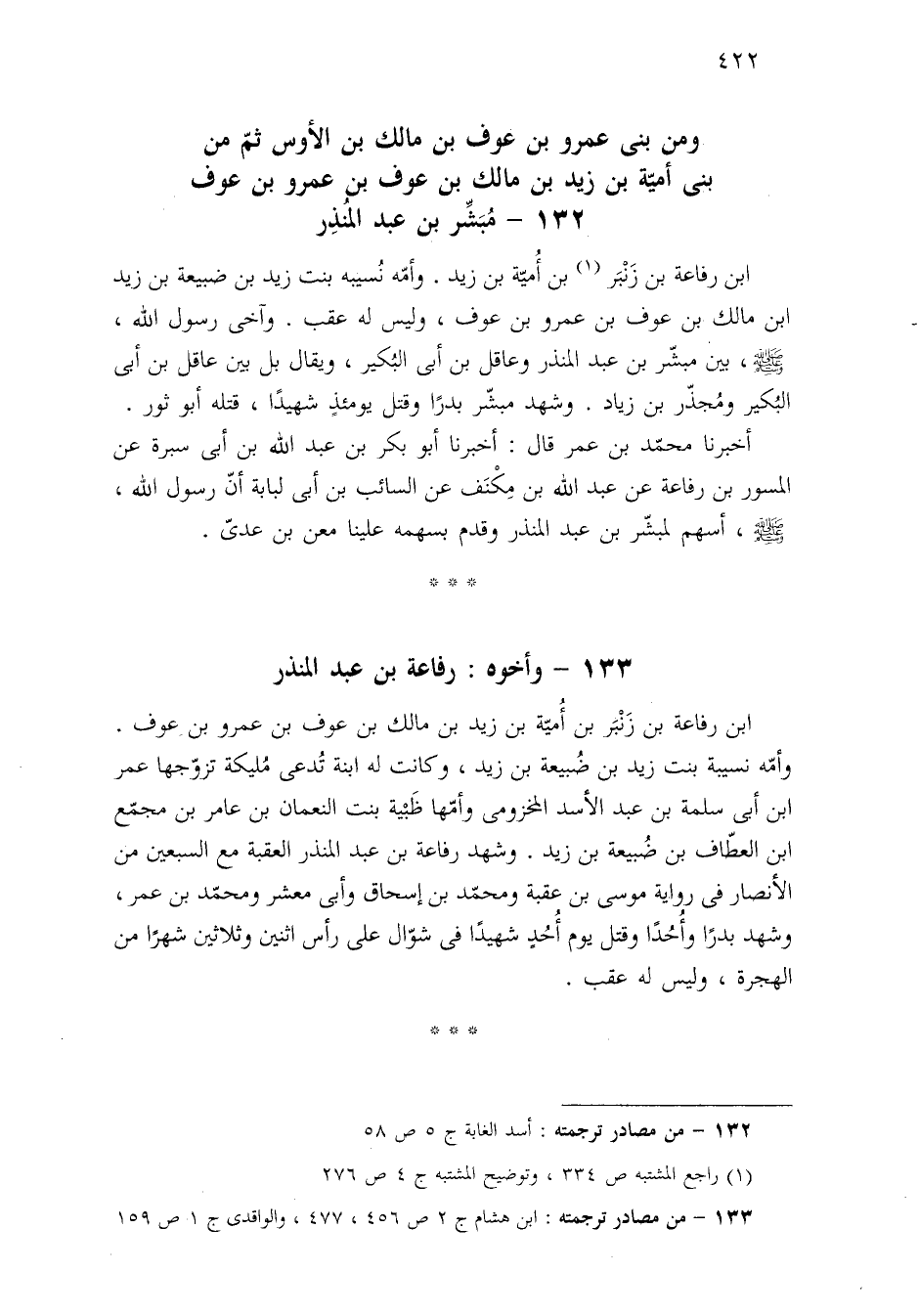 ١٣٣ - وأخوه: رفاعة بن عبد المنذر