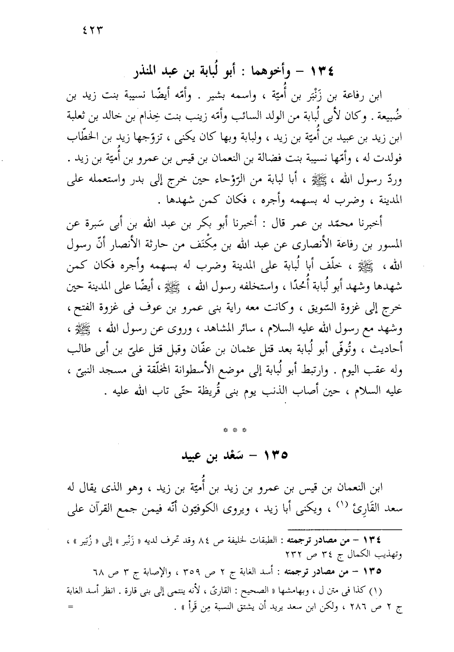 ١٣٥ - من مصادر ترجمته: أسد الغابة ج ٢ ص ٣٥٩، والإصابة ج ٣ ص ٦٨.