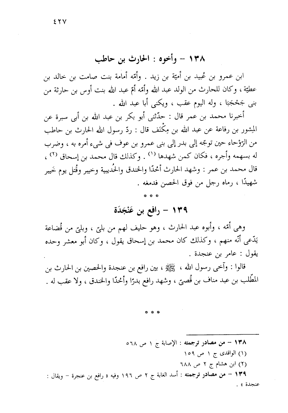 ١٣٨ - من مصادر ترجمته: الإصابة ج ١ ص ٥٦٨.