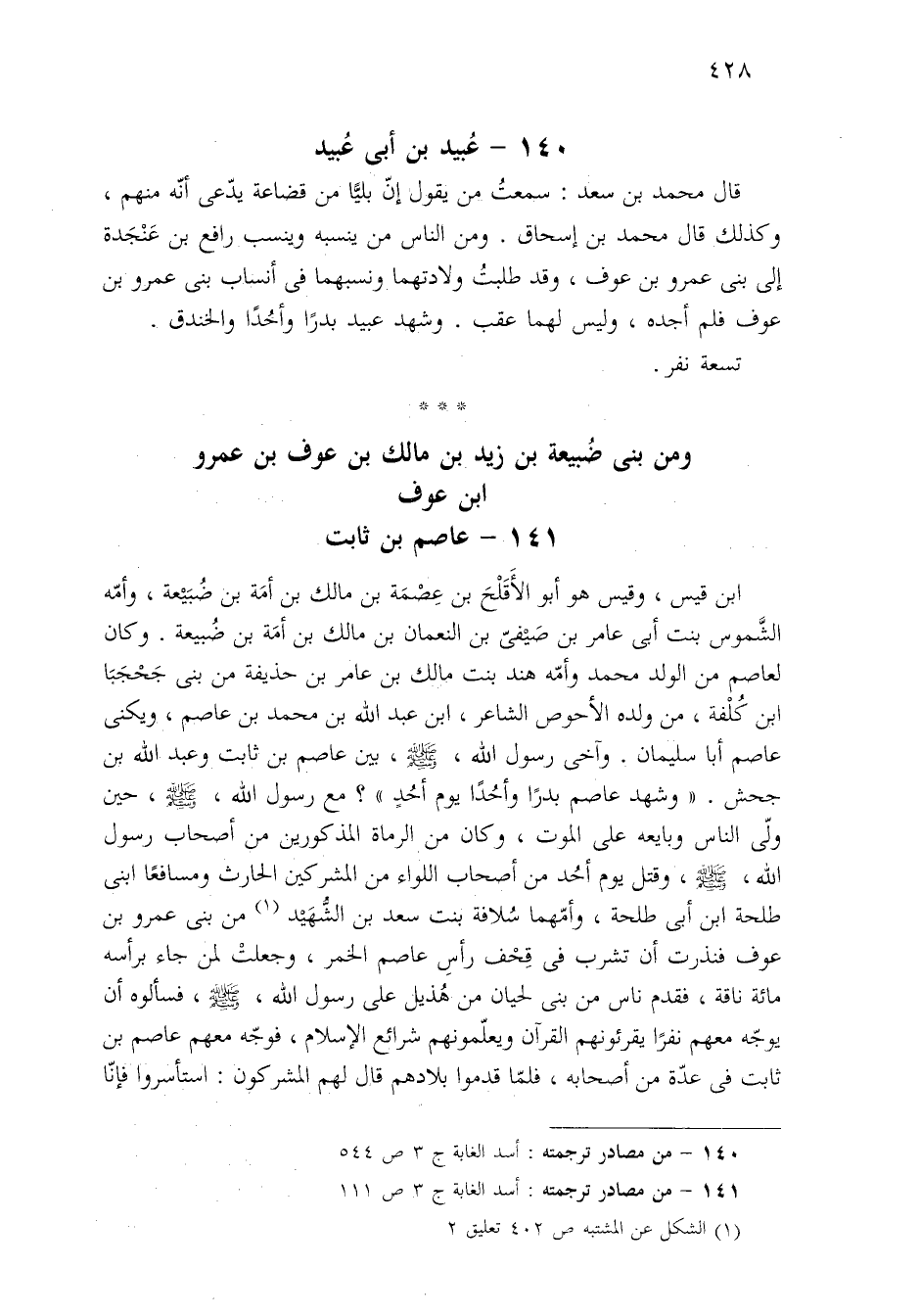 ١٤١ - من مصادر ترجمته: أسد الغابة ج ٣ ص ١١١.