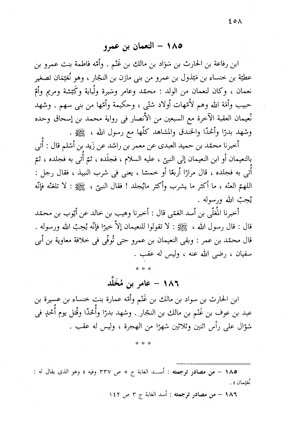 ١٨٦ - من مصادر ترجمته: أسد الغابة ج ٣ ص ١٤٢.