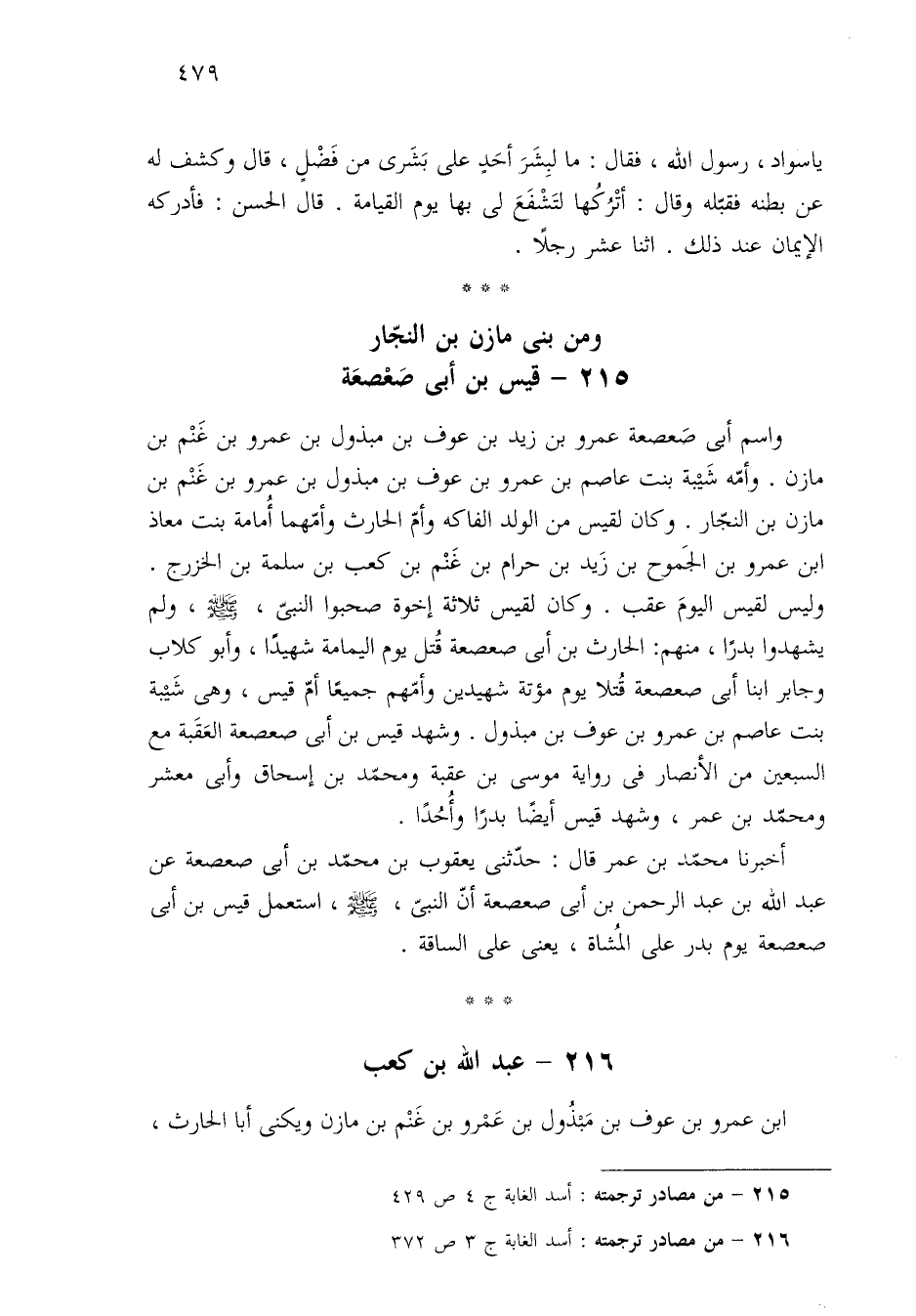 ٢١٦ - من مصادر ترجمته: أسد الغابة ج ٣ ص ٣٧٢.