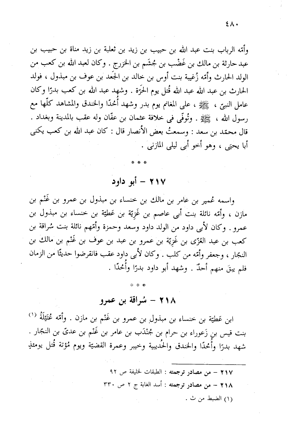 ٢١٨ - من مصادر ترجمته: أسد الغابة ج ٢ ص ٣٣٠.