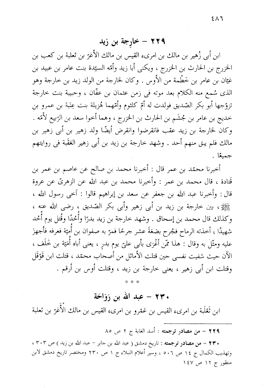 ٢٣٠ - من مصادر ترجمته: تاريخ دمشق (عبد الله بن جابر - عبد الله بن زيد) ص ٣٠٣، وتهذيب الكمال ج ١٤ ص ٥٠٦، وسير أعلام النبلاء ج ١ ص ٢٣٠ ومختصر تاريخ دمشق لابن منظور ج ١٢ ص ١٤٧.