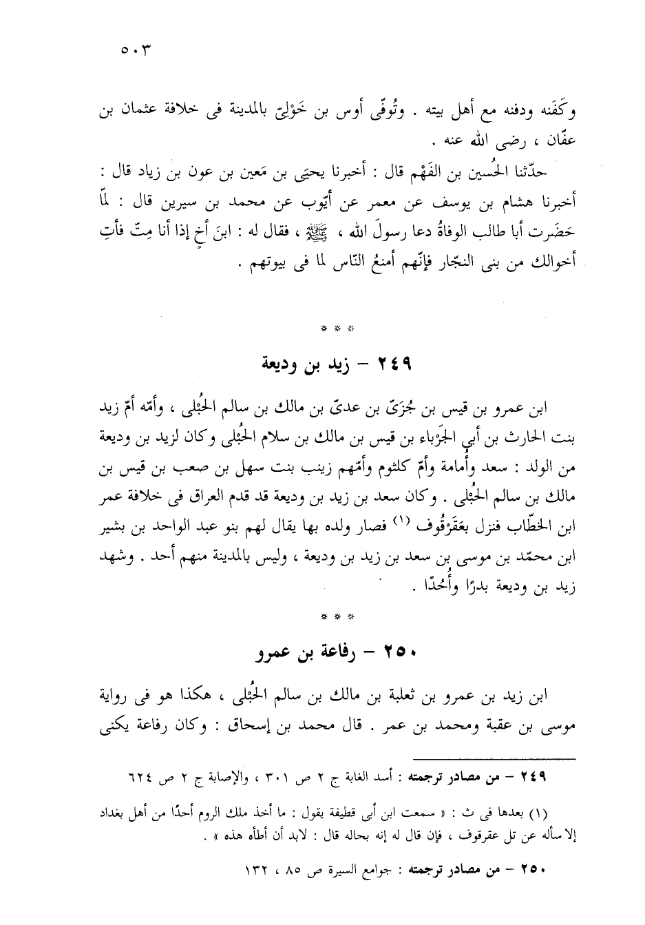 ٢٤٩ - من مصادر ترجمته: أسد الغابة ج ٢ ص ٣٠١، والإصابة ج ٢ ص ٦٢٤.