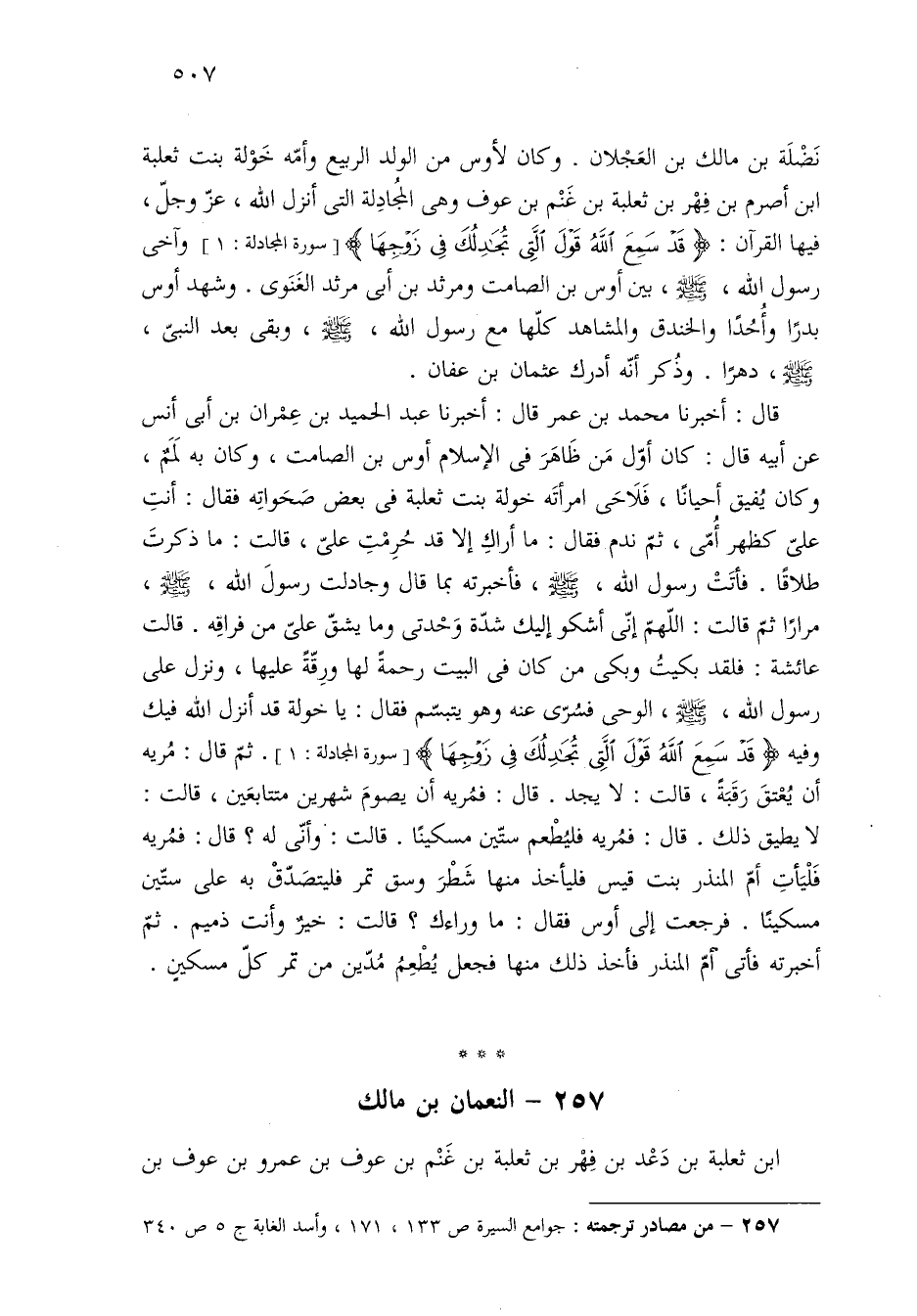 ٢٥٧ - من مصادر ترجمته: جوامع السيرة ص ١٣٣، ١٧١، وأسد الغابة ج ٥ ص ٣٤٠.