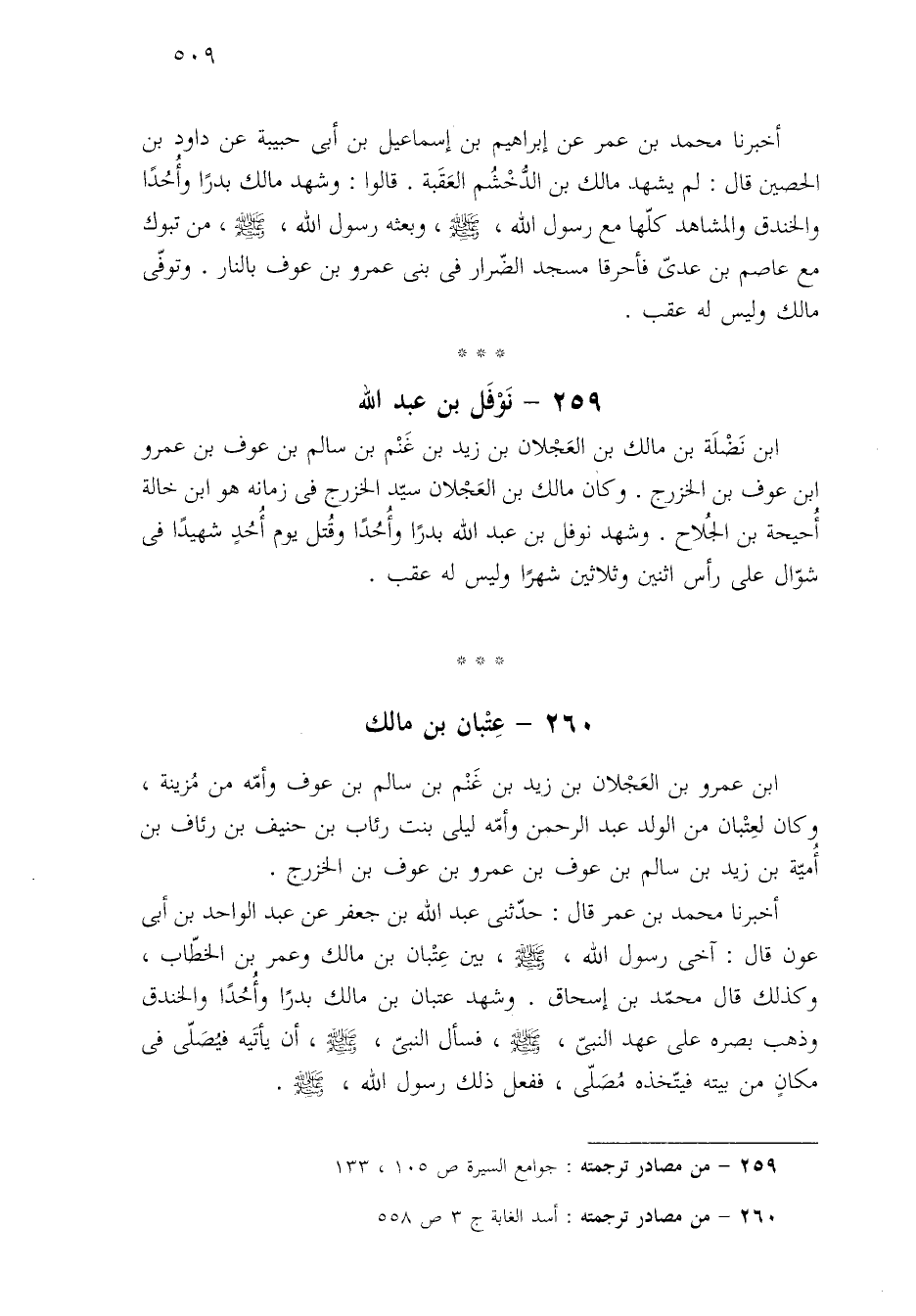 ٢٦٠ - من مصادر ترجمته: أسد الغابة ج ٣ ص ٥٥٨.