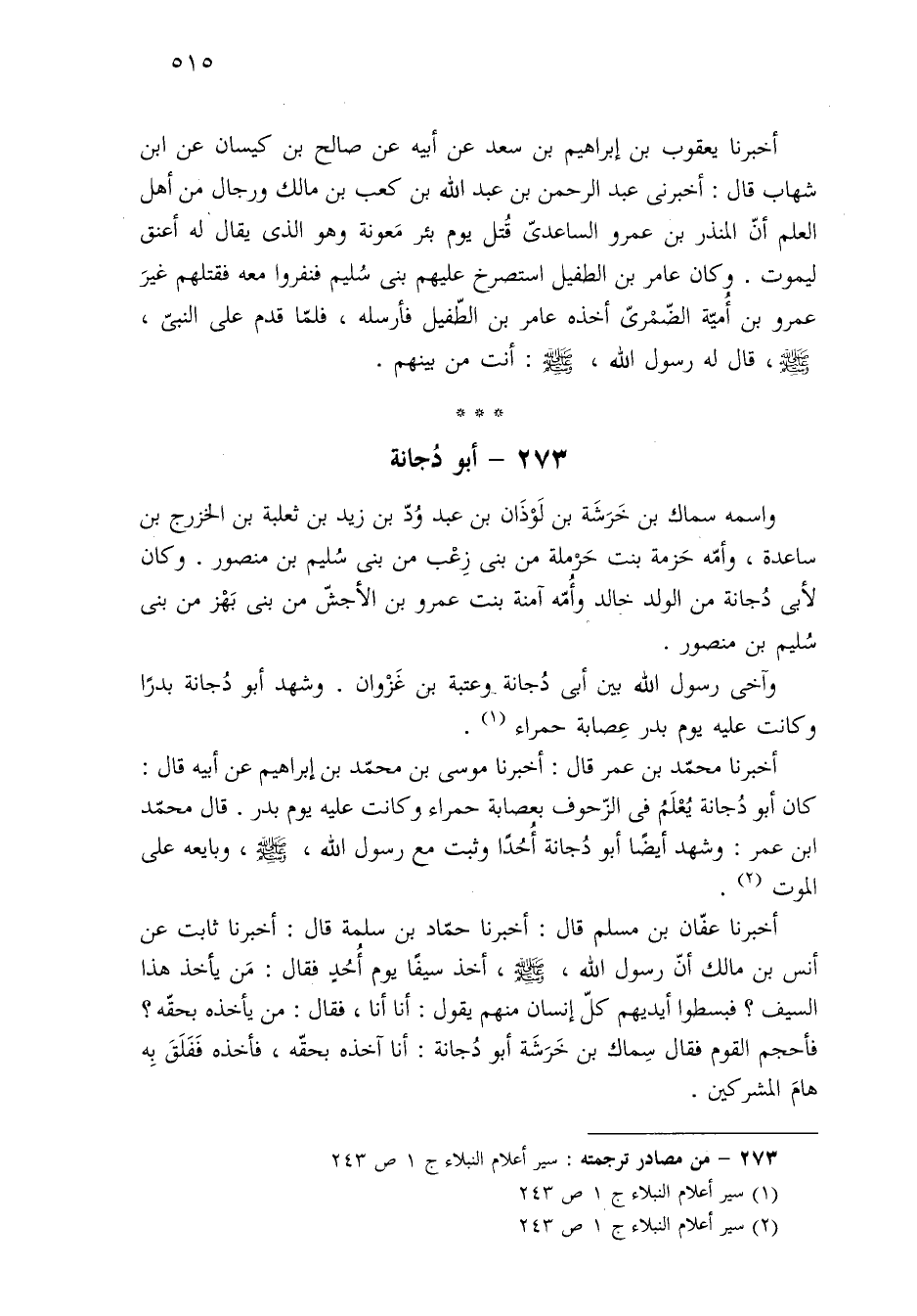 (¬١) سير أعلام النبلاء ج ١ ص ٢٤٣.