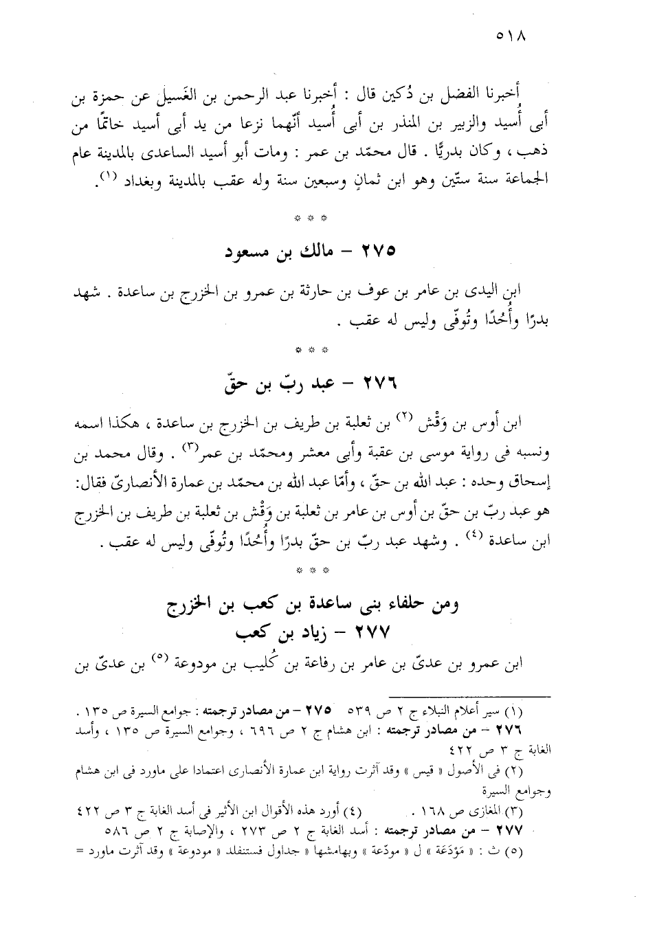 ٢٧٦ - من مصادر ترجمته: ابن هشام ج ٢ ص ٦٩٦، وجوامع السيرة ص ١٣٥، وأسد الغابة ج ٣ ص ٤٢٢.