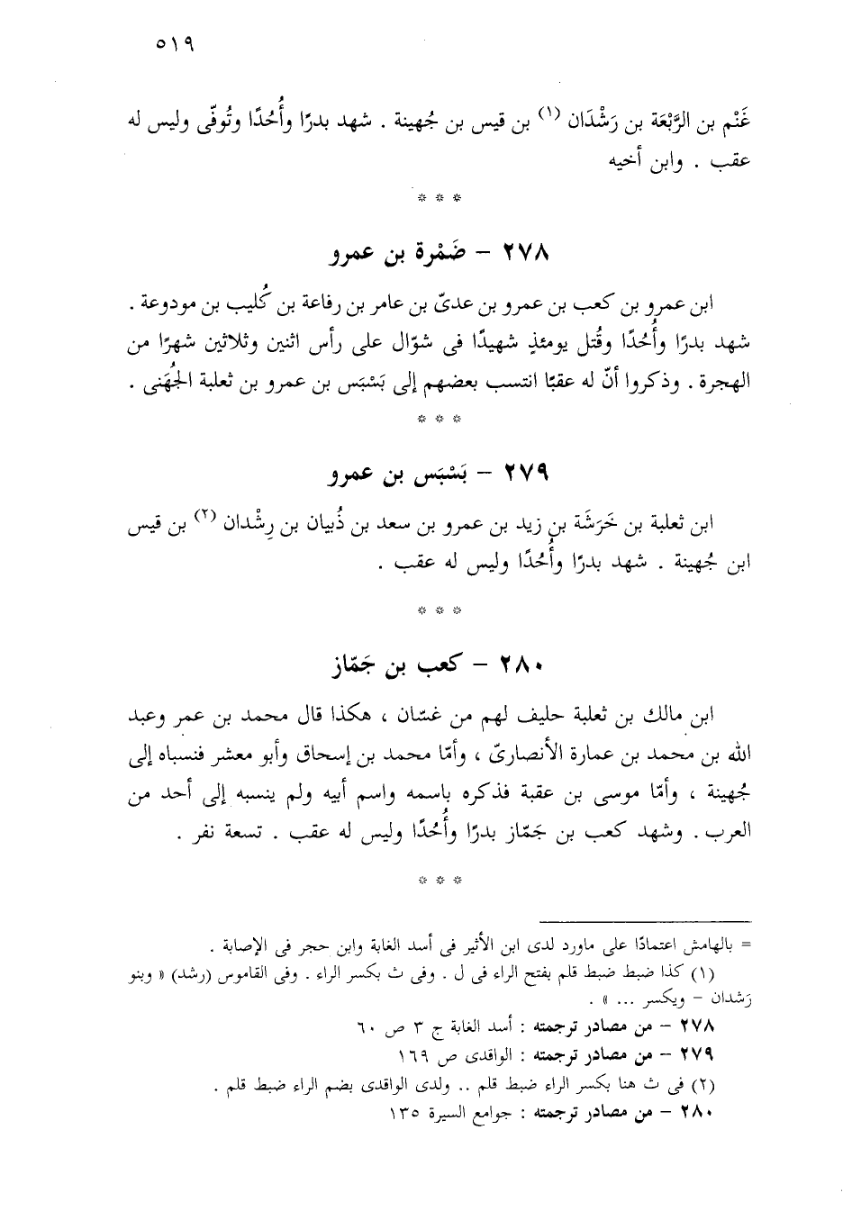 ٢٧٨ - من مصادر ترجمته: أسد الغابة ج ٣ ص ٦٠.